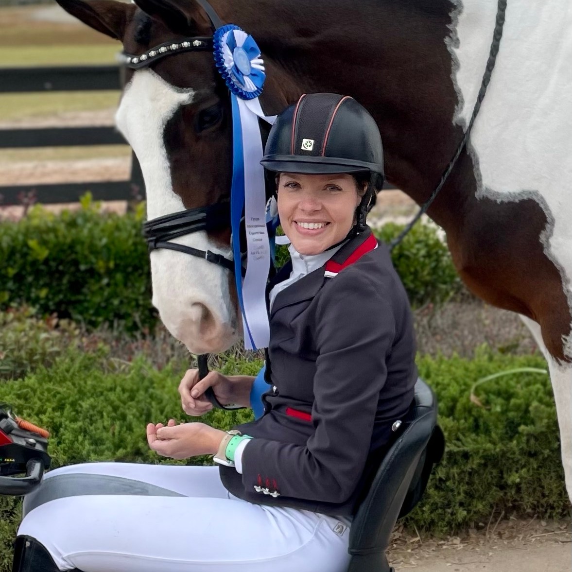 Veronica Gogan (Fairfax, VA) isn’t letting multiple sclerosis or disability dissuade her from a goal of international equestrian competition. At the 2020 USEF Para Dressage Emerging Athlete Championship, she earned blue ribbons in her grade aboard Glenord’s Christopher Robin and again at the 2021 USEF National Championships aboard Mason. She has been a USEF Para Dressage Emerging Athlete since 2020. She is laser-focused on her goal to compete, all while managing a chronic, debilitating illness and raising a young family. As an ambassador for para dressage, a role model for those with multiple sclerosis, and an advocate for the disabled community, Veronica lives her philosophy to positively and relentlessly put one foot in front of the other.