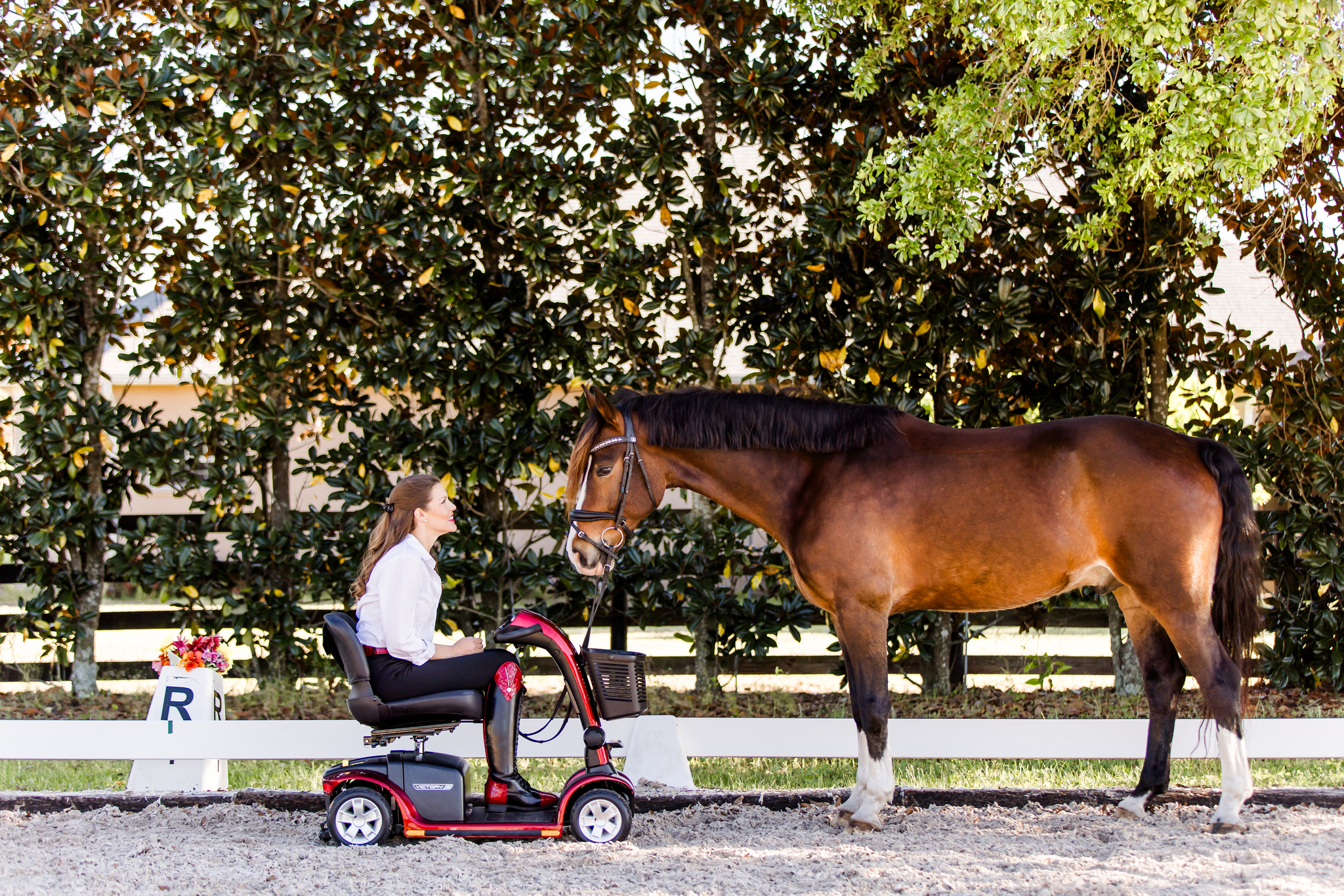 Dressage is an equestrian discipline originating from ancient cavalry riding. Today’s dressage horses are asked to “dance” – adjust their gaits, move sideways, and bear weight on their hindquarters to display grace and beauty. In competition, a series of prescribed movements makes up a test, which is scored with an overall percentage. “Para” is intended to mean parallel to able-bodied sport; using the same basics in training, gaits, and movements. Para equestrians have a physical, measurable disability. They are classified according to their functional ability and grouped accordingly to ensure a level playing field. Grade I riders are most affected by impairment and grade V are the least affected. Para dressage offers competitive opportunities for athletes of every competitive level including the Paralympics and the World Equestrian Games.